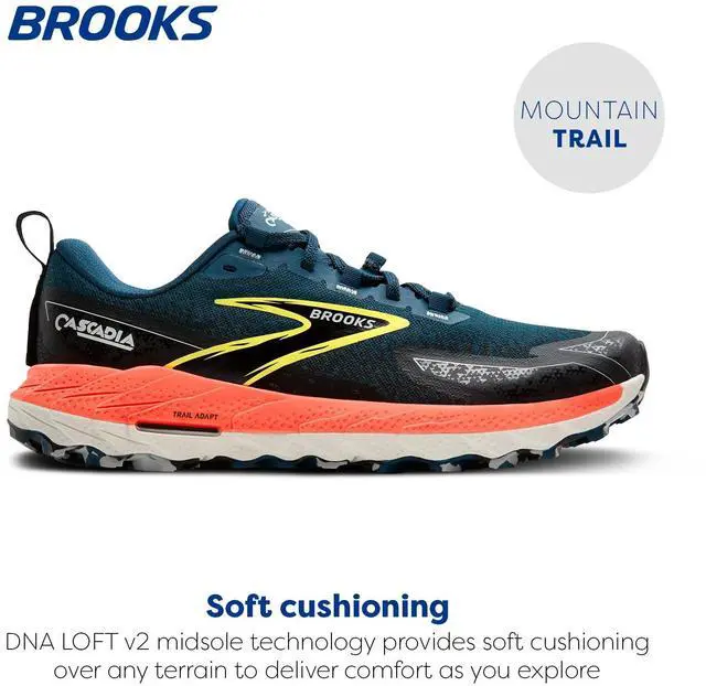 Head off on your next adventure. The men's Cascadia 18 trail-running shoes feature an updated mesh upper with protective overlays in high-wear areas. Soft cushioning and an adaptable stability system enhance comfort as you cruise the trails. Sticky traction helps ensure secure strides so you can enjoy the view instead of looking at your feet.