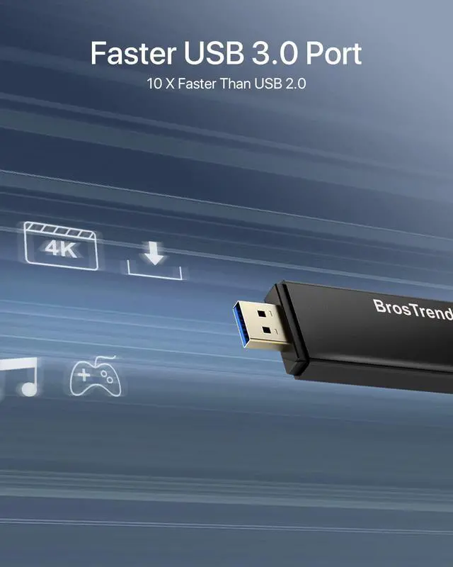 BrosTrend 1200Mbps USB WiFi adapter (model AC1) enables you to connect your laptop or desktop PC to the wifi network with the full speed of 867Mbps on the 5GHz WiFi band or 300Mbps on the 2.4GHz Wi-Fi band. You can greatly improve your wi-fi signal and get a much faster wireless network connection for online gaming, HD video, high-quality music, Internet surfing, etc.