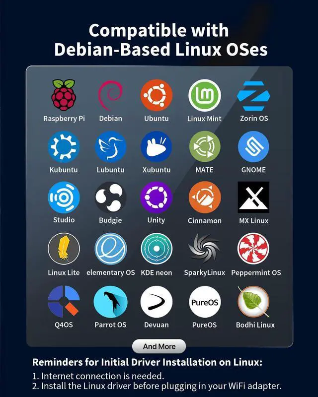 Works with most Linux distributions that are derived from Debian. NOT compatible with Kali, Arch, Fedora, Manjaro, deepin, Pop! OS, antiX, RHEL, CentOS, openSUSE Leap, OpenWrt, Guix, Puppy, Tails, Endless OS, LibreELEC, OSMC, SteamOS.