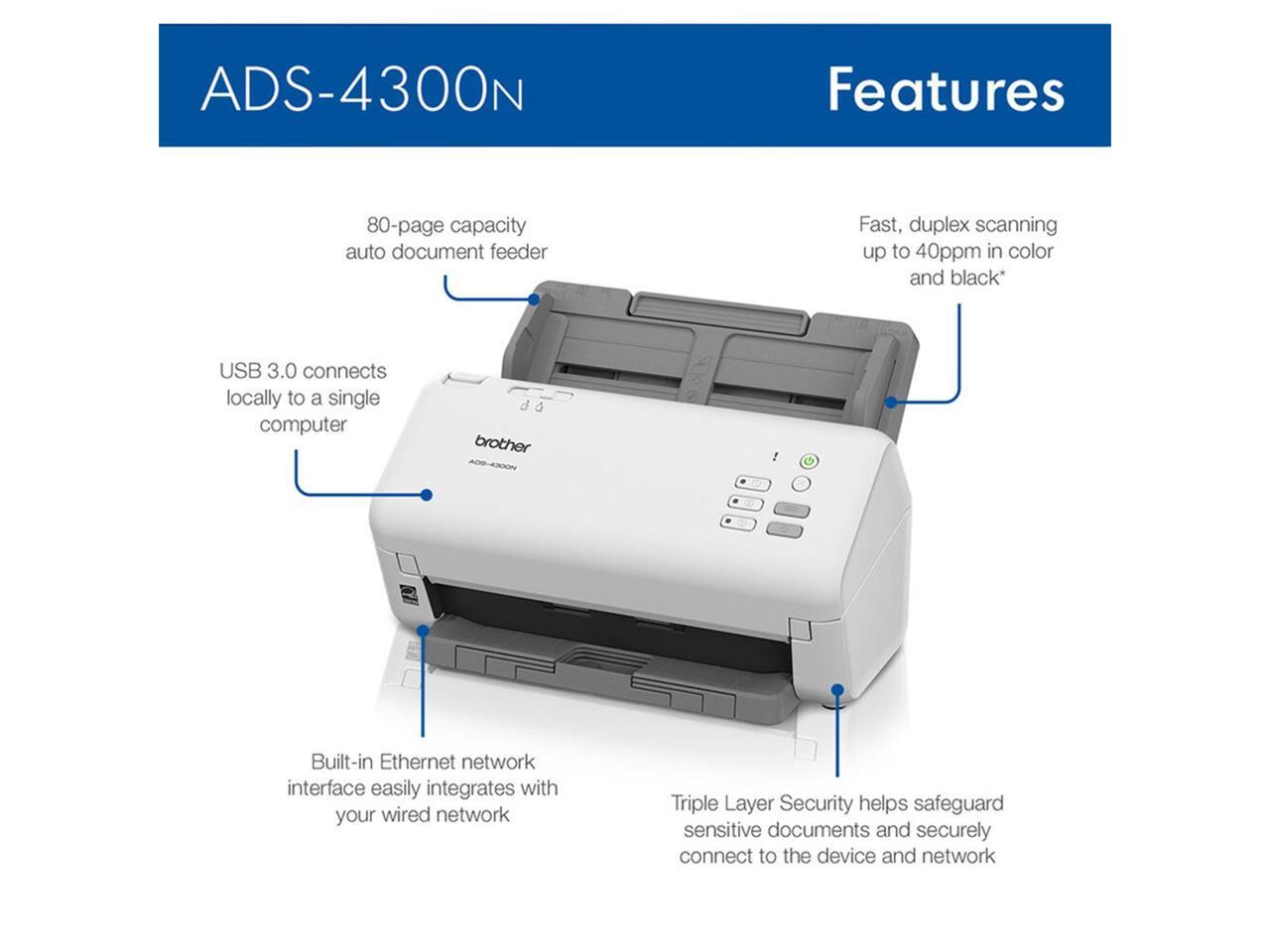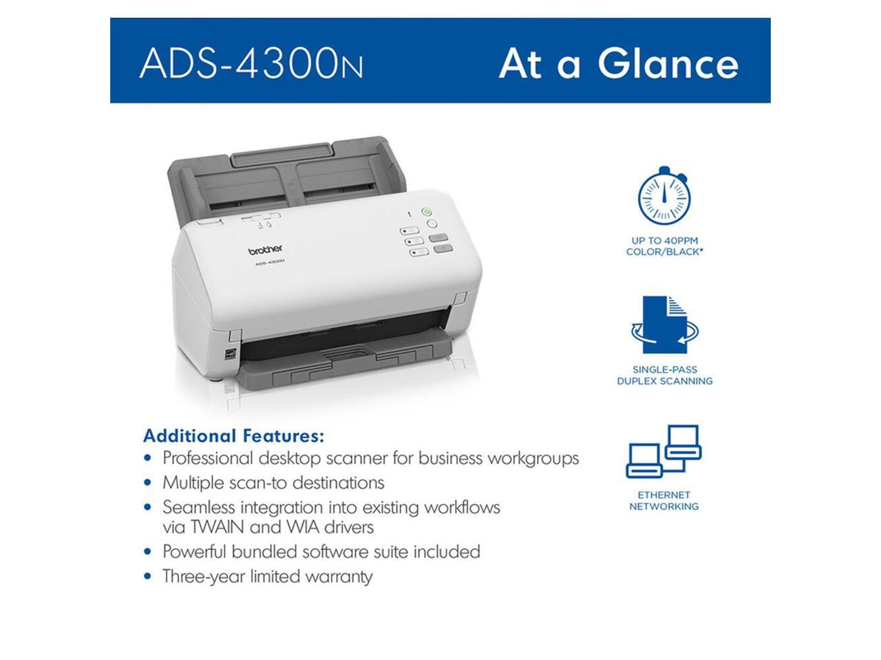 Brother ADS4300N Dual CIS 600 x 600 dpi Sheet Fed Professional Desktop Scanner