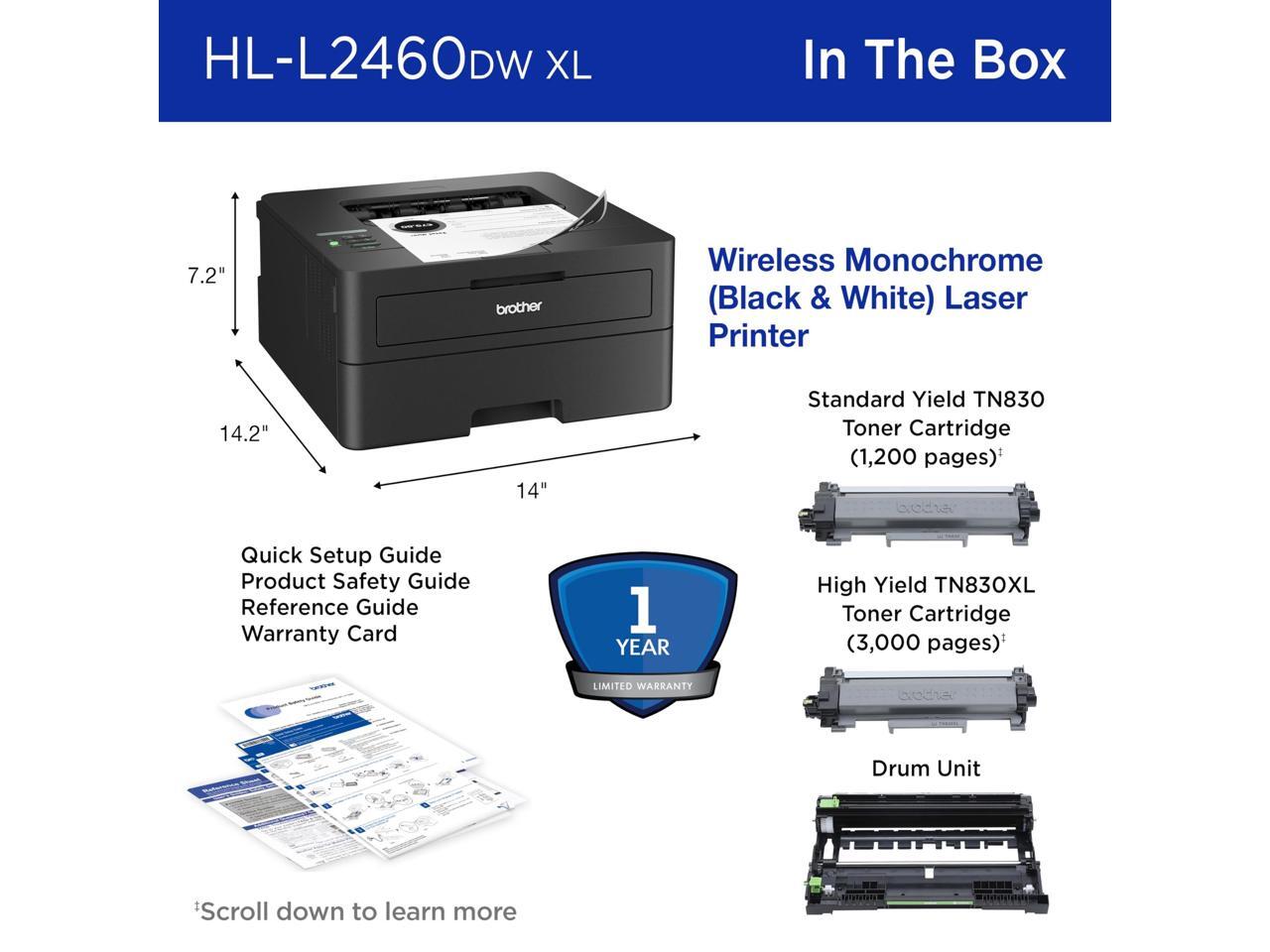 Brother HL-L2460DW XL Up to 36 ppm Monochrome Wireless 802.11b/g/n (2.4GHz) / 802.11a/n (5GHz), Ethernet, Hi-Speed USB 2.0 Electrophotographic Laser Printer