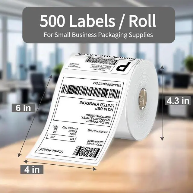 A 500-sheet roll of 4x6 thermal labels is commonly used.