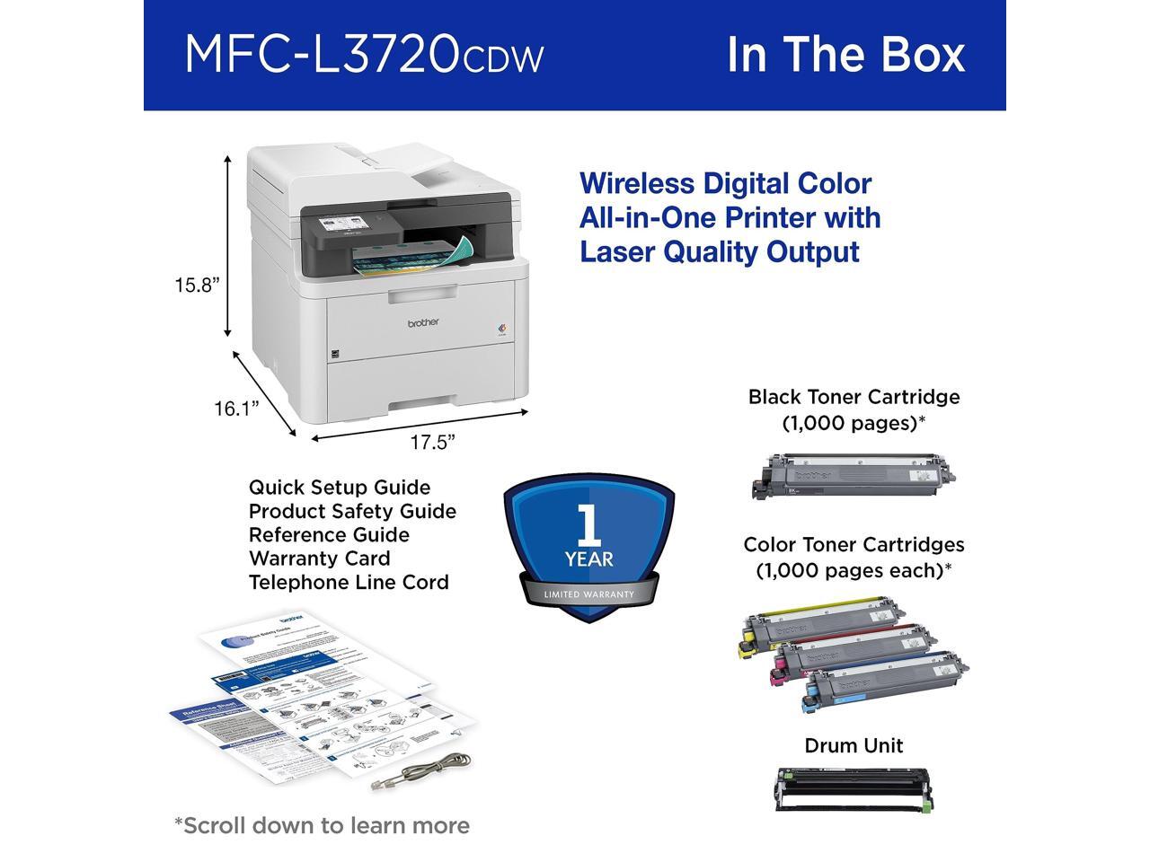 Brother MFC-L3720CDW Wireless Compact Digital Color All-in-One Printer