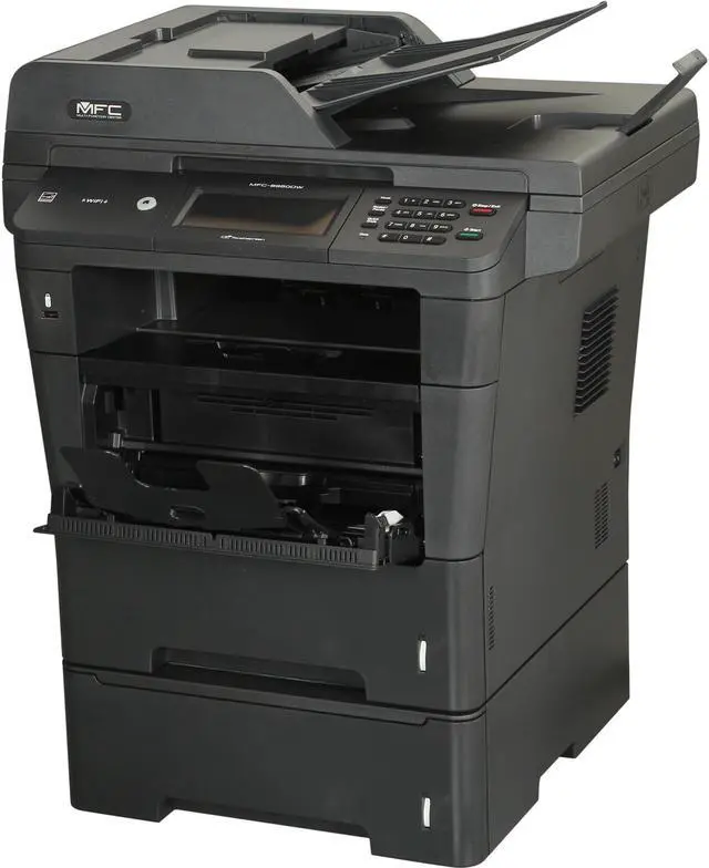 High-Performance Laser All-in-One with Advanced Duplex, Wireless Networking and Dual Paper Trays. Help increase your productivity with black print and copy speeds up to 42ppm. Share with others via its built-in wireless 802.11b/g/n or Gigabit Ethernet interfaces. Store up to legal size paper via dual, adjustable, 500-sheet capacity paper trays. Total capacity up to 1,050 sheets for fewer refills. Allows for easy navigation and menu selection. Scan documents to your GOOGLE DOCS, EVERNOTE and Dropbox accounts via Web Connect TouchScreen Interface. Two-sided printing to help save paper. Plus, single-pass, duplex scanning/copying simultaneously scans both sides of the page. Help lower your operating costs with a super highyield 12,000-page replacement toner cartridge. Compatible with: AirPrint, Google Cloud Print, Brother iPrint&Scan, Cortado Workplace, Wi-Fi Direct. Copy or color scan bound materials or up to leagal-size documents.