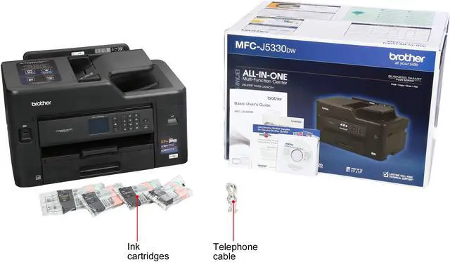 MFC-J5330DW, LC3017 Black, Cyan, Magenta, Yellow High Yield Ink Cartridges CD-ROM - Assembly for Windows and Mac User's Manual Quick Setup Guide Telephone Line Cord