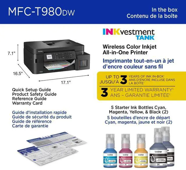 Brother MFC-T980DW Wired & Wireless INKvestment Tank Inkjet Multifunction Printer Color