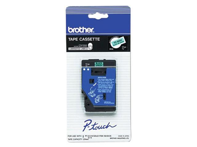 Brother TC8001 P-touch Laminated Tape, 1 pk 12mm (0.47") Black on Green tape for P-Touch 7.7m (25.2 ft)