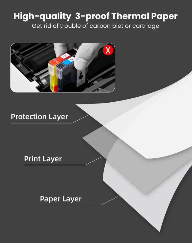 High Quality Paper: Thermal printer paper is carefully made of high-quality materials and does not contain industrial chemicals such as BPA/BPS, ensuring the health and safety of print users. Our thermal paper 8.5 x 11 with fast drying characteristics it a avoids dirtying hands and provides a refreshing, clear & high-quality printing experience
