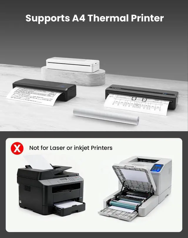 Wide Compatibility: Our thermal paper 8.5x11 sizes, specifically customized for portable thermal printer. Compatible with P83 PB821 portable printer. And compatible with other brands of portable printers, including: Gloriang, JADENS, Tattmuse, Phomemo, Gutherren etc. Note: This is 8.5 x 11 thermal printer paper, Not compatible with laser printers, inkjet printers, copiers