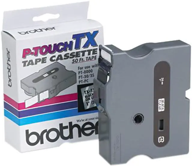TX Series laminated tape features standard adhesive designed for flat surfaces like office paper, file folders and binders. Use in hot and cold environments. Laminated tape withstands water, grease, grime, abrasion, UV, spills, heat and cold. Use lettering tape with Brother PT-30, 35, 8000 and PC machines. Tape cartridge yields 50'.