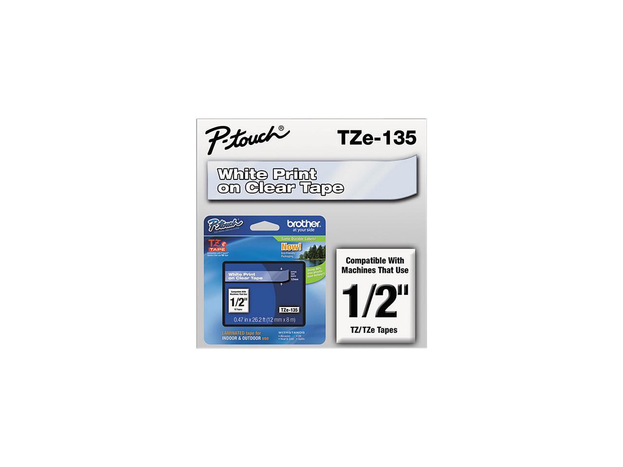 Brother P-Touch TZ Series Tape Cartridge, 0.5"w, White on Clear