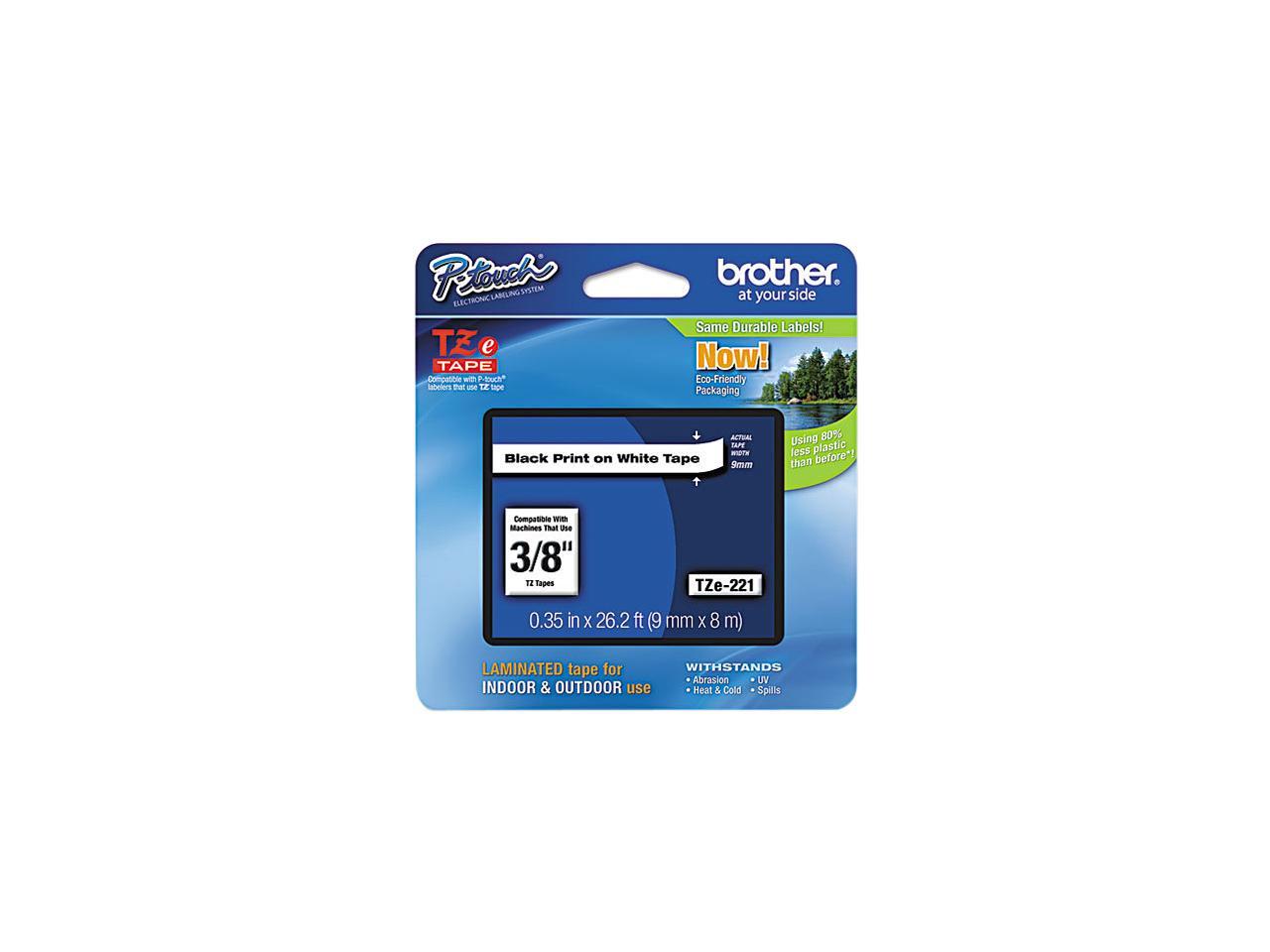 Brother TZE221 TZe Standard Adhesive Laminated Labeling Tape 0.38" Width x 26.20 ft Length - 1 Each - White