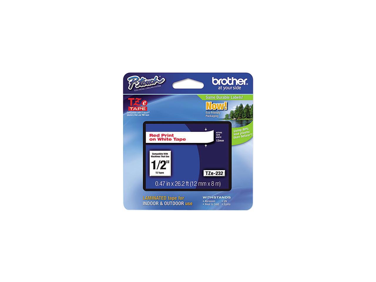 Brother P-Touch TZ Series Tape Cartridge , 0.5"w, Red on White