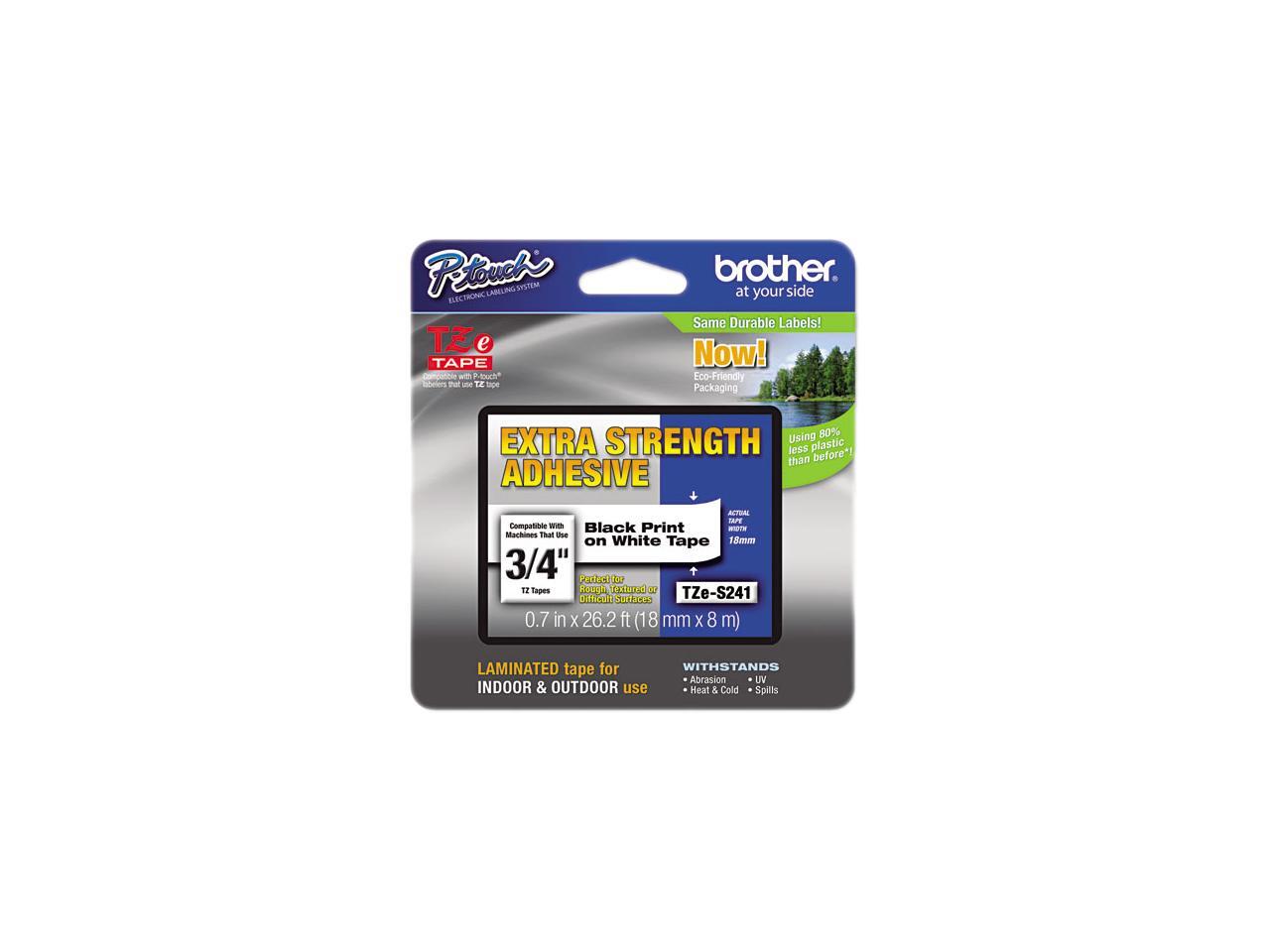 Brother 18mm (3/4") Black on White Extra Strength Super Adhesive Industrial Tape (8m/26.2') (1/Pkg)