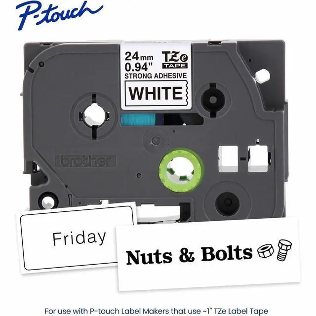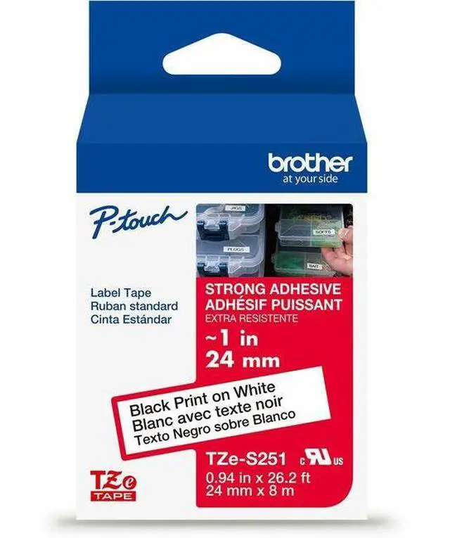 Brother Genuine P-Touch TZe Black Print on White Label Tape (TZeS251), Strong Adhesive Laminated, ~1in x 26.2ft (24mm x 8m), for Select P-Touch Label Makers, Water-Resistant, Extra Strength