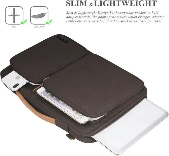 -Slim & Lightweight Design,but has various pockets to hold daily essentials,like phone,pens,mouse,wallet charger, adapter, cables etc, very easy to put in backpack or suitcase on travel.
