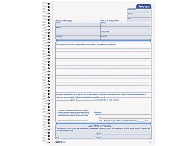 Tops 41850 Spiralbound Proposal Form Book, 8-1/2 x 11, Two-Part Carbonless, 50 Sets/Book