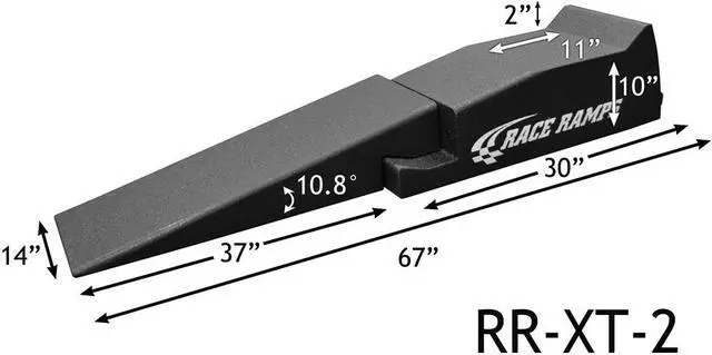 The 67 inch Race Ramps XT have a gentle, 10.75 degree angle for your low clearance vehicle -- but don't let that "gentle" stuff fool you. Our solid core design ramps are the toughest around, supporting up to 3,000 pounds and tires up to 12 inches wide. Whether you've got a Corvette or other low clearance vehicle, this low profile car ramp will get the job done. The 67 inch Race Ramps XT are ideal for oil changing, car detailing or other routine maintenance. Expect to be surprised, because you won't believe how easy it is to drive up our ramp.