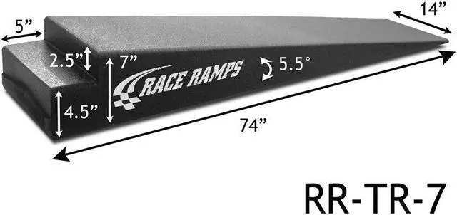 Simply place the trailer door or existing ramps (see photo) of your open trailer on the notch of these specially designed ramps for a more gradual angle of approach. 7" high ramps are 74" long and 14" wide, reduce angle of approach to 5.5 degrees, and can accommodate tires up to 12" wide.