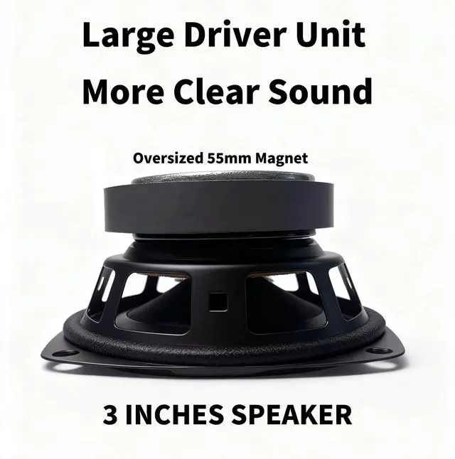 Experience the power of two custom 3-inch drivers working in perfect sync. Each driver, equipped with its own 55mm magnet, focuses on filling your entire desk space with a rich, uniform soundscape. You'll notice deeper bass presence, enhanced vocal clarity, and a remarkably full-bodied audio that feels more immersive and powerful