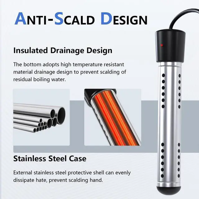 The stainless steel protective cover prevents direct contact with the heating element.
