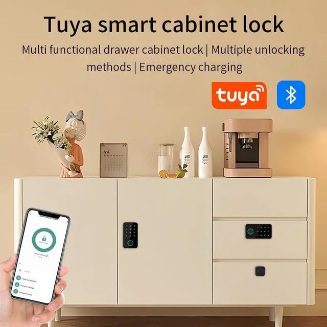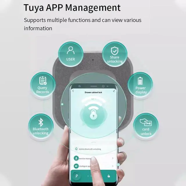 This wireless Bluetooth smart cabinet lock eliminates the complexity and security risks of traditional mechanical locks. With Bluetooth wireless connection as the core, it deeply integrates the Tuya APP and SmartLife APP two intelligent platforms, allowing you to unlock, query unlocking records, and manage multiple devices through your mobile phone, easily building a keyless intelligent storage ecosystem.