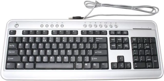 Made to fit into small spaces, this sleek, silver ultra-slim keyboard is a multimedia darling! It is half the height of traditional keyboards, with an enhanced scissors key design, for silent, stable typing. This keyboard has 104 normal keys, and 13 function keys, with hot keys for Instant Web and Email access!