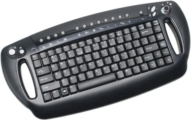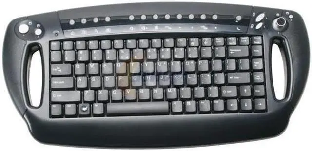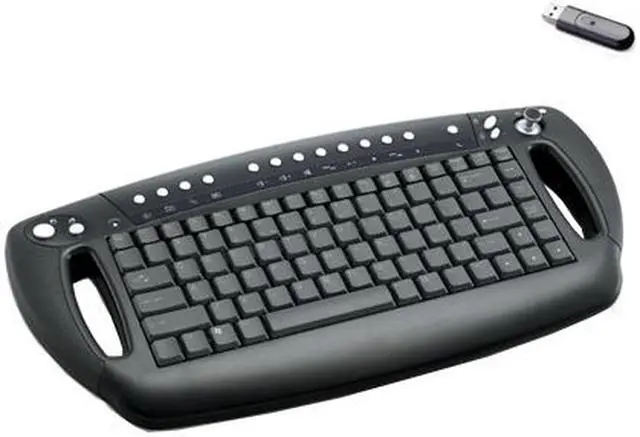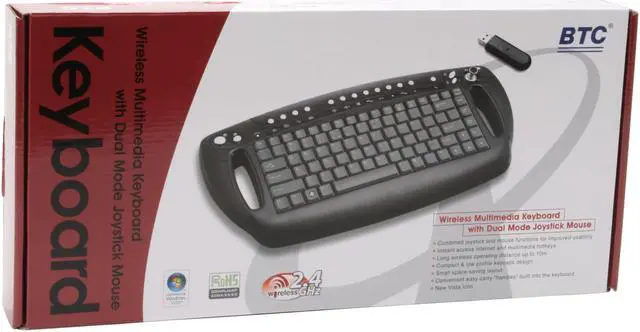| Features | The 9019URF III 2.4GHz is a wireless multimedia keyboard with built-in Joystick/Mouse functions! This unique wireless keyboard uses 2.4GHz wireless technology with Adaptive Frequency Hopping and 32,768 IDs for improved RF performance in environments with multiple RF devices. The 9019URF III 2.4GHz wireless technology also provides an extended operating distance for easy control of Media Center applications. The Joystick function also provides excellent control and usability for PC Media Center applications. A simple key sequence changes from Joystick mode to Mouse mode where it provides excellent control for standard applications. The 9019URF III also has a full range of Multimedia and Internet hotkeys The 9019URF III offers the demanding PC user high performance and exceptional functionality for PC Media Center and standard applications. |