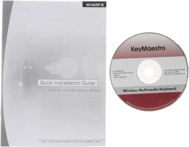 | Package Contents | 9019URFIII Wireless Multimedia Keyboard 4 AA Batteries USB RF Receiver User Manual Driver Disk |
