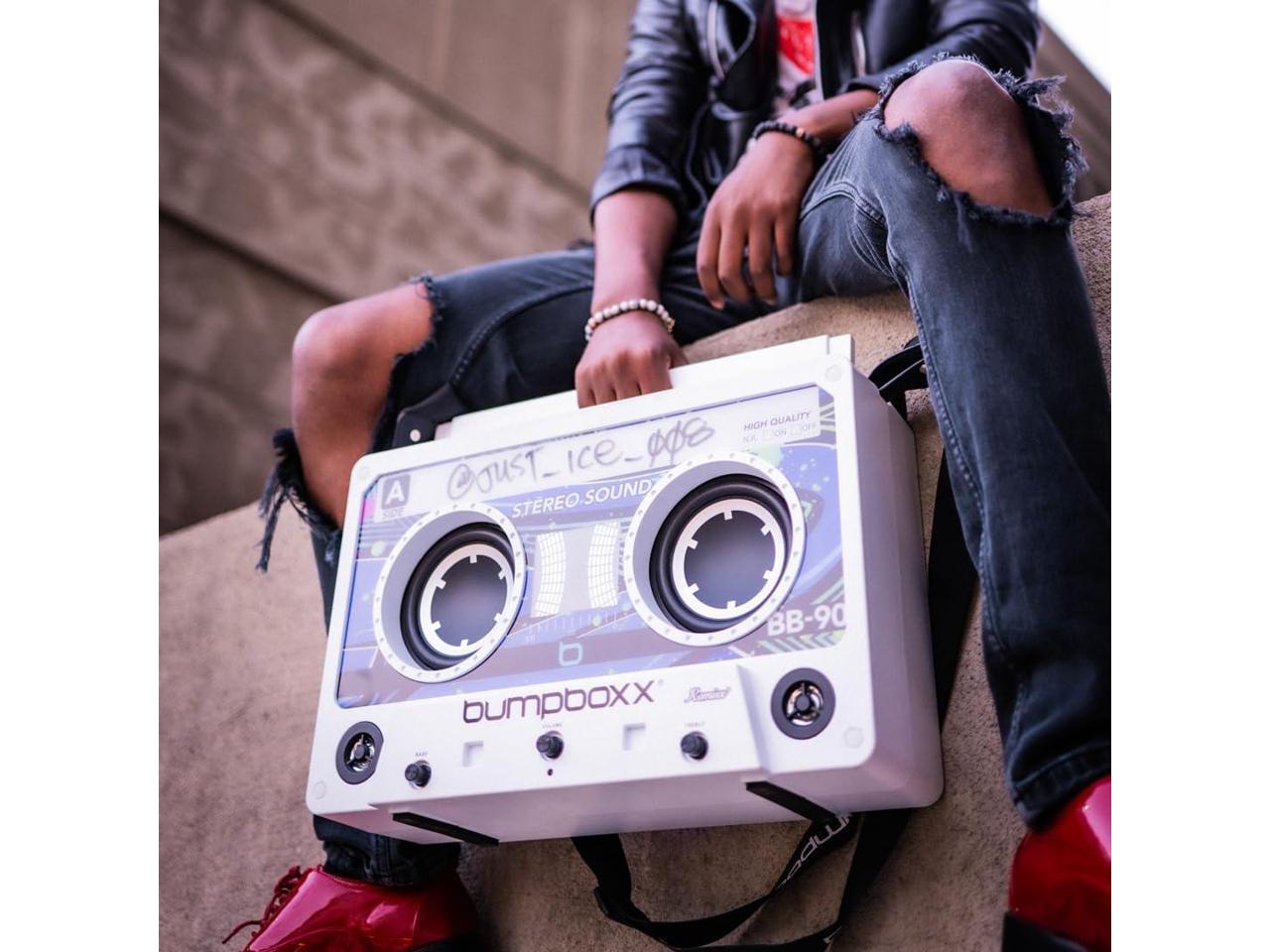 CRYSTAL CLEAR PARTY MUSIC - The Bumpboxx Remixx bluetooth speaker allows for TWS wireless pairing with 2 units and 3.5mm aux for easy connection. Its wireless with a 12 hour rechargeable lithium battery, which easily powers up with a USB charging port