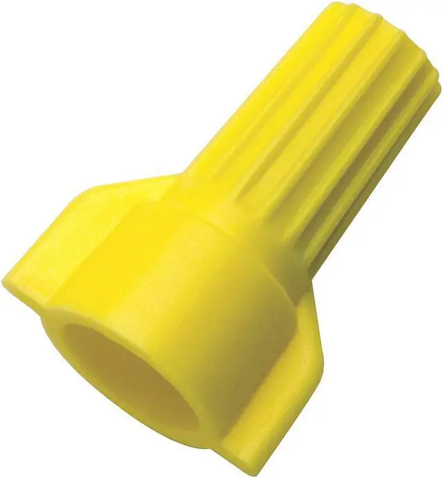 Twist-On Wire Connectors, Color Yellow, For Conductor Material Copper, Maximum Temperature 221 Degrees F, Maximum Voltage 600 V, Minimum Wire Combination (2) 18 AWG, Maximum Wire Combination (3) 12 AWG, Contact Finish Zinc, Contact Material Steel, UL 94 Flammability Rating V-2, Maximum Conductors 4, Standards CSA Certified, UL Listed, Wire Connector Style Wing, Fill Material Not Applicable, Insulation Material Polypropylene, Maximum Single Wire Size 10 AWG, Minimum Single Wire Size 14 AWG. This item has been restricted from sale in the following state (s): []