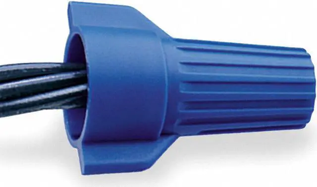 Twist-On Wire Connectors, Color Blue, For Conductor Material Copper, Maximum Temperature 221 Degrees F, Maximum Voltage 600 V, Minimum Wire Combination (3) 12 AWG, Maximum Wire Combination (2) 6 AWG, Contact Finish Zinc, Contact Material Steel, UL 94 Flammability Rating V-2, Maximum Conductors 6, Standards CSA Certified, UL Listed, Wire Connector Style Wing, Fill Material Not Applicable, Insulation Material Polypropylene, Maximum Single Wire Size 6 AWG, Minimum Single Wire Size 6 AWG. This item has been restricted from sale in the following state (s): []
