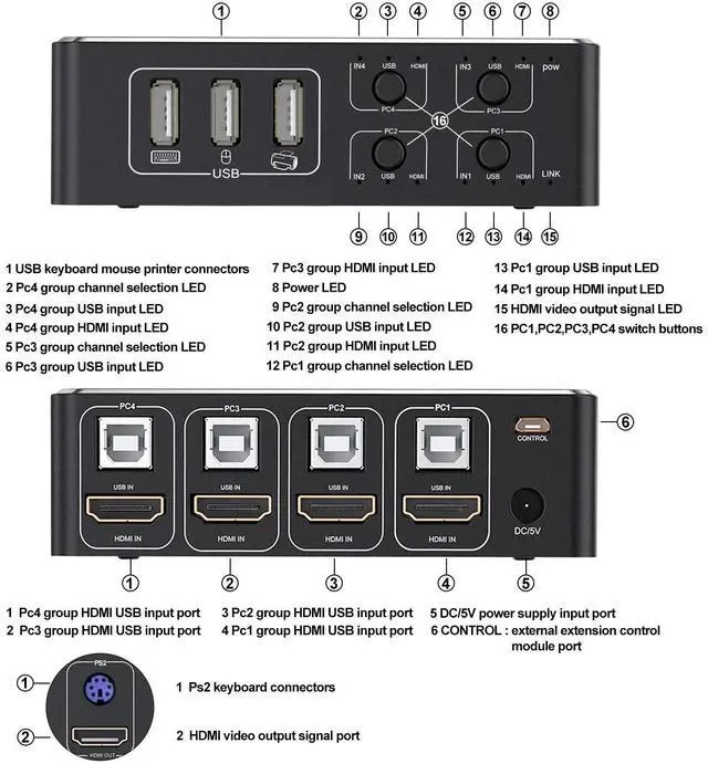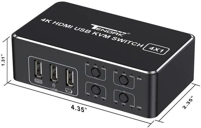 KVM Switch HDMI 4 Port Box, USB and HDMI Switches 3 USB Hub, UHD 4K@60H for 4 Computers Share Keyboard Mouse and one HD Monitor