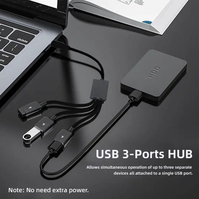 USB 2.0 to 3 Ports Hub Cable Bus Power 1 to 3 for Laptop Notebook PC Mouse Disk Printer