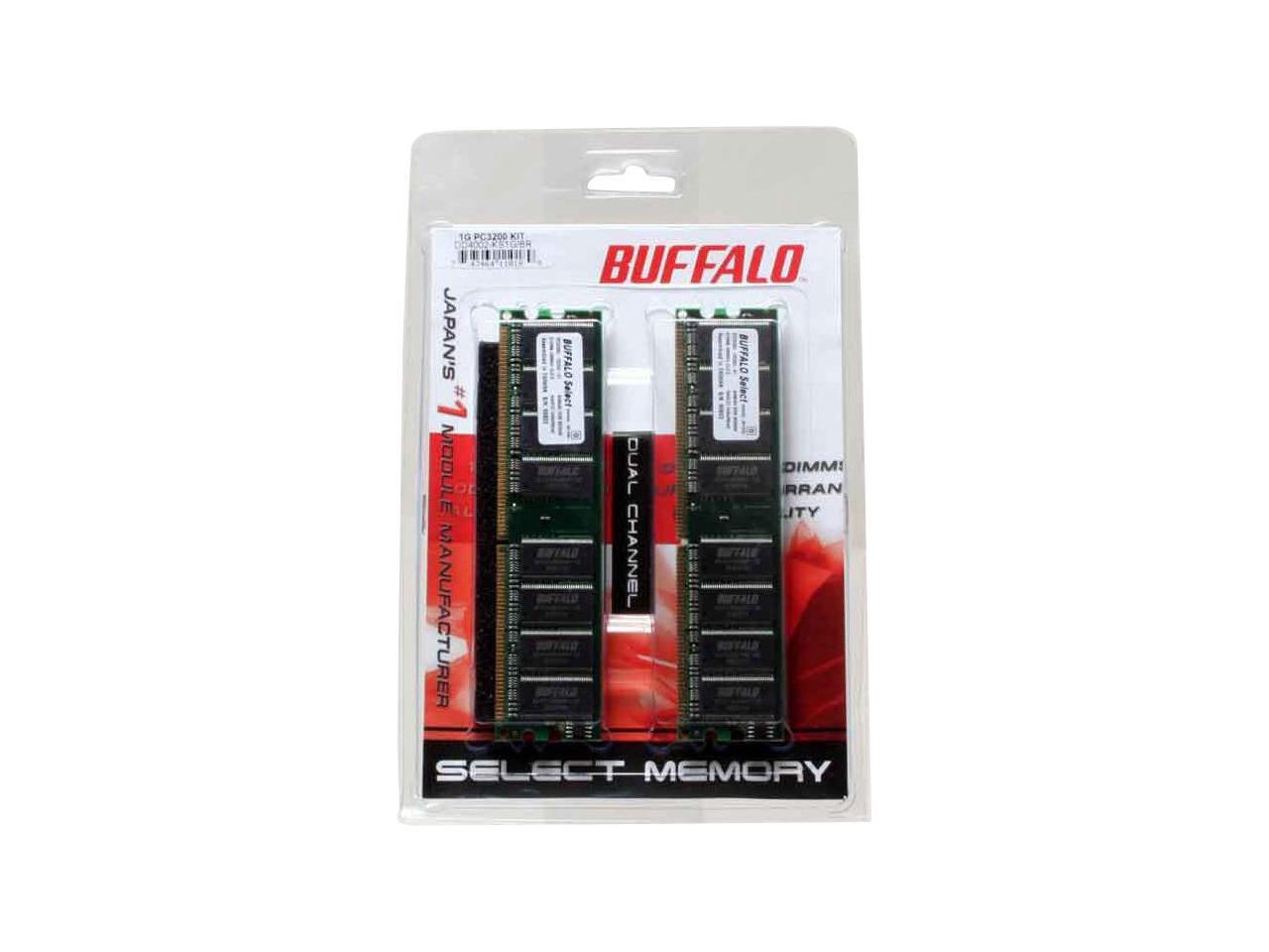 BUFFALO Select 1GB (2 x 512MB) 184-Pin DDR SDRAM DDR 400 (PC 3200) Dual Channel Kit Desktop Memory Model DD4002-KS1G/BR