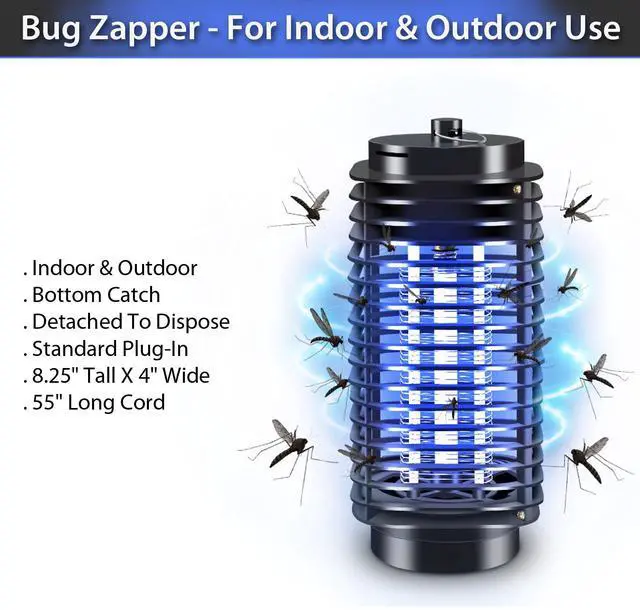 Bulk Buys - As Seen on TV Bug Zapper. Ideal for porches motor homes and backyards this indoor & outdoor bug zapper attracts flying insects such as mosquitoes gnats and flies and features a bottom catch that can be detached to dispose of bugs. Operates using a standard plug-in (requires wall outlet). Measures approximately 8.25" tall x 4" wide with a 55" long cord. Comes packaged in an individual box. - Black