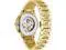 Band- Gold-Tone Stainless Steel Bracelet with Fold-Over Push-Button Deployment Clasp. Crystal- Mineral. Water Resistant up to 30 meters. Movement- Automatic.