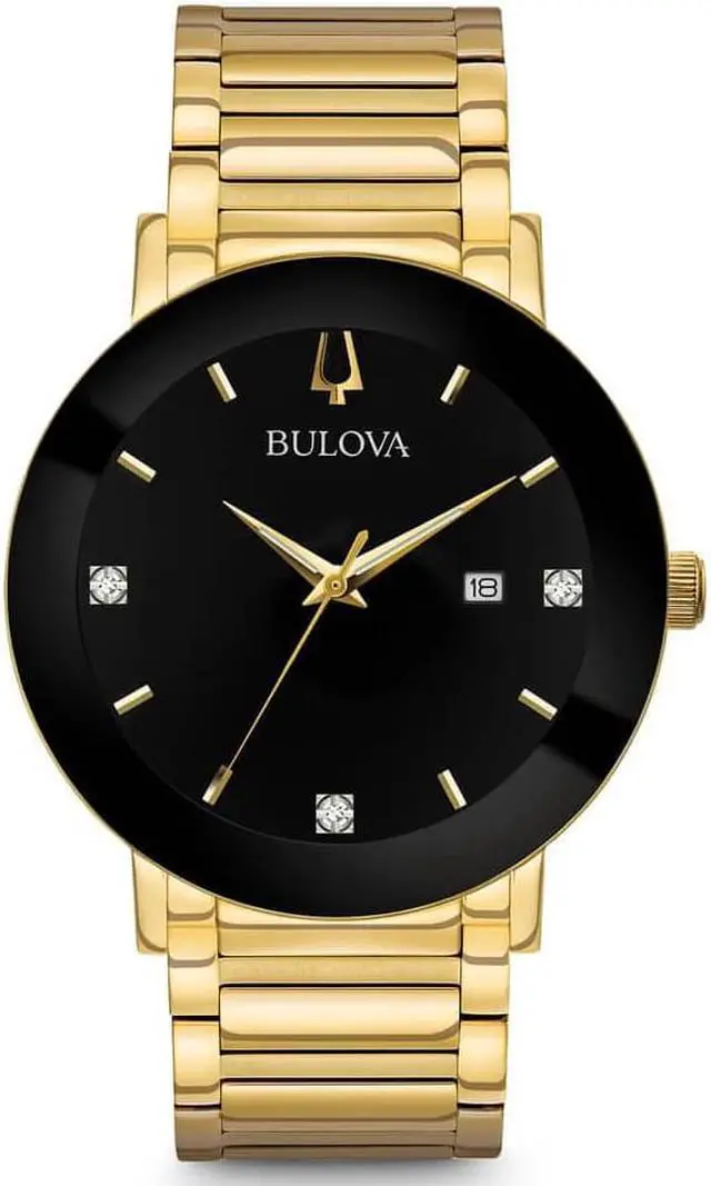 Bulova Mens Futuro Diamond Gold Tone Plated Steel Quartz Watch 97D116