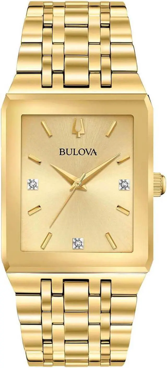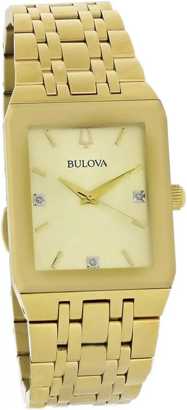 Bulova Quadra Mens Gold Plated Stainless Steel Quartz Watch 97D120
