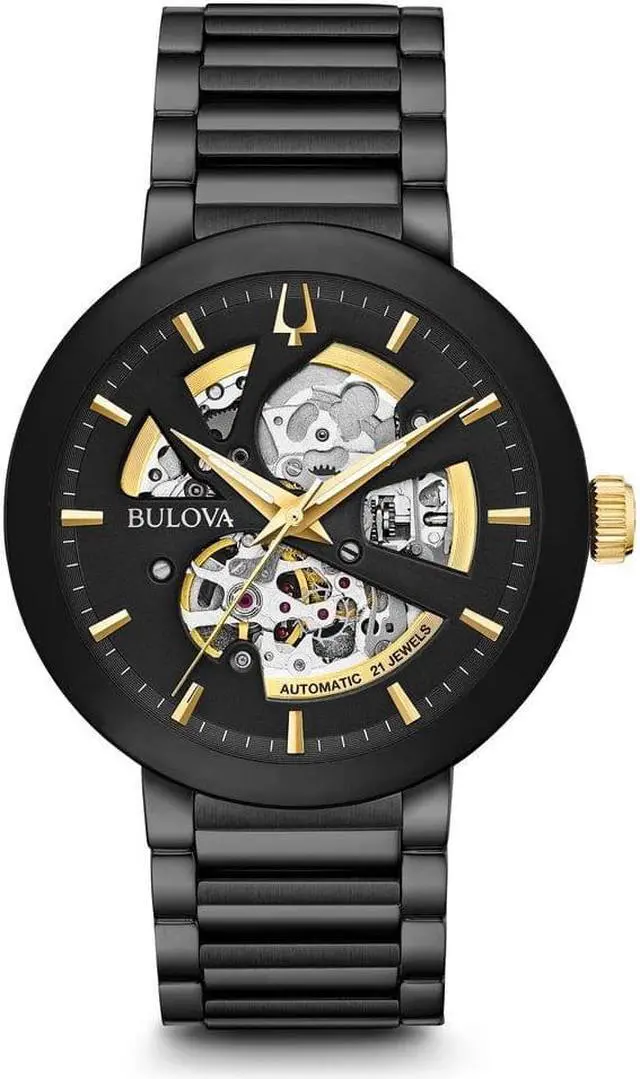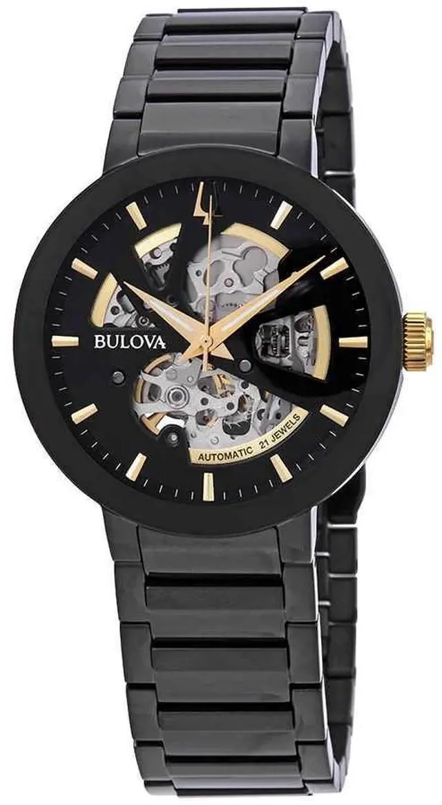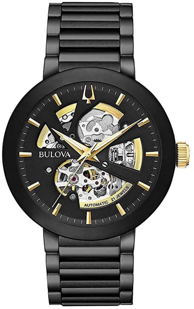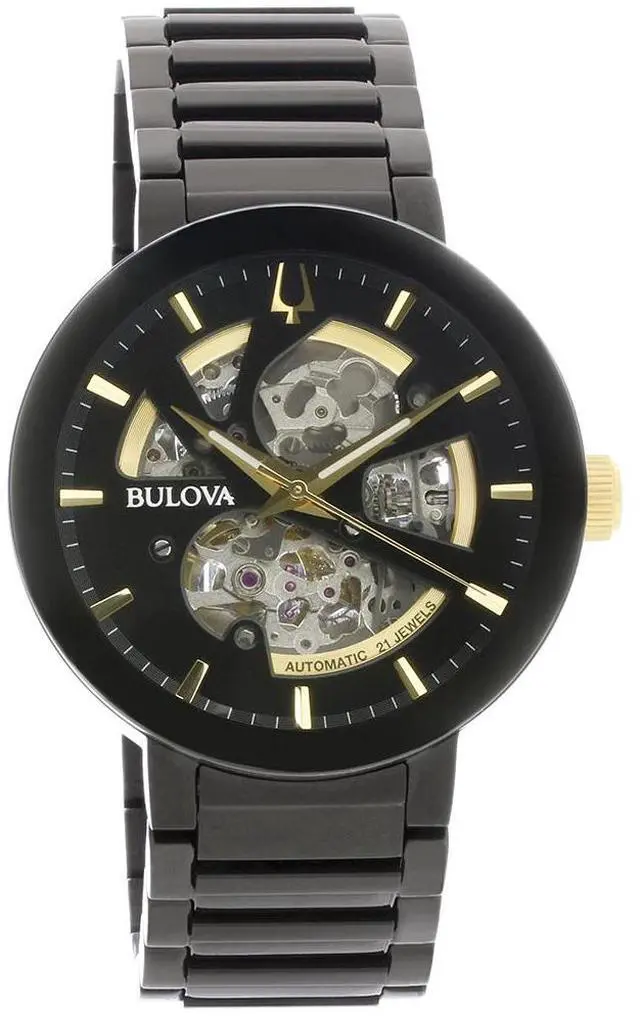 Bulova Futuro Black ION Plated Stainless Swiss Automatic Watch 98A203