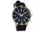 Gold-tone stainless steel case. Rubber strap. Blue dial. Quartz movement. Date. Chronograph. Water resistant 100 meters.