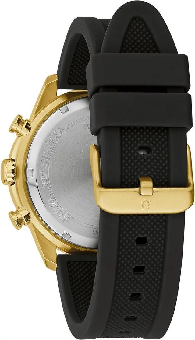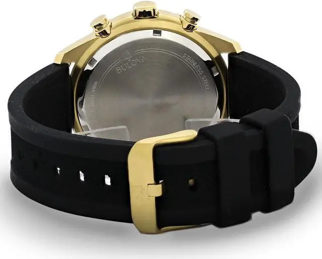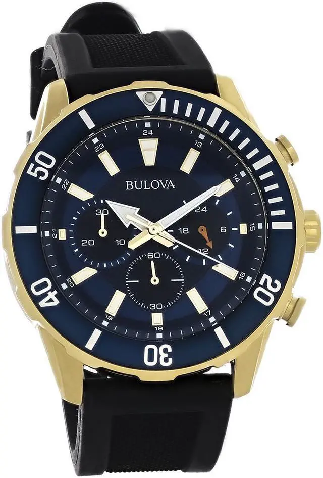 Bulova Mens Chronograph Blue Dial Gold Plated Stainless Quartz Watch 98A244
