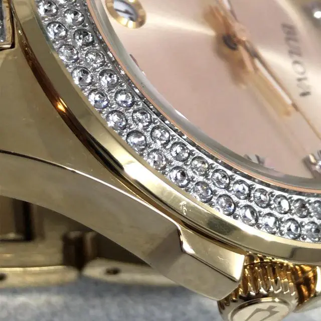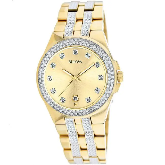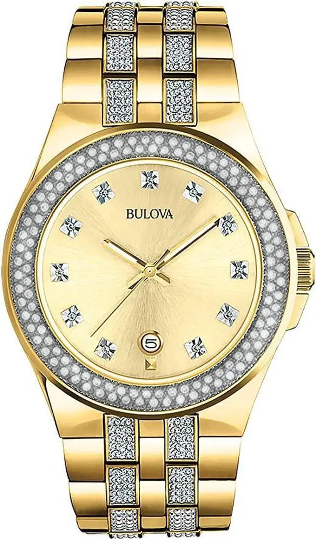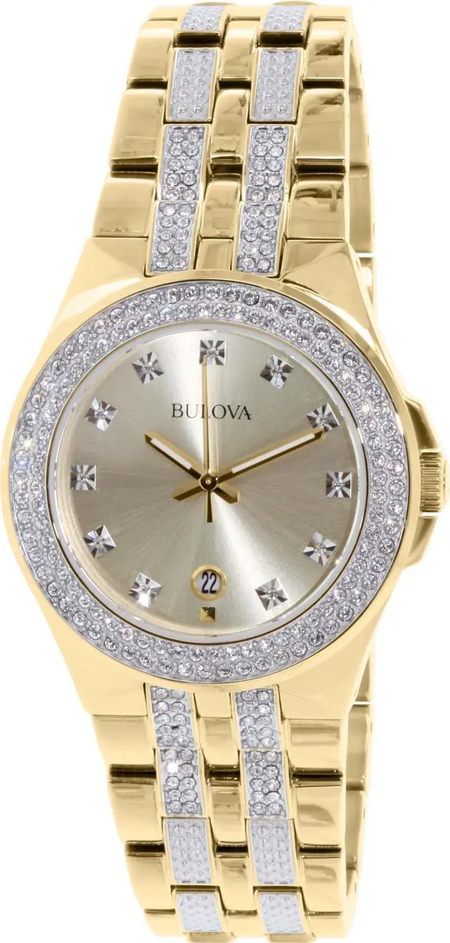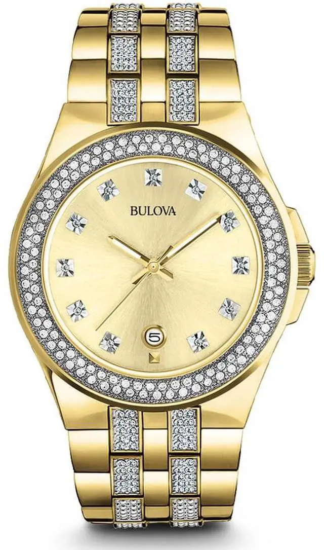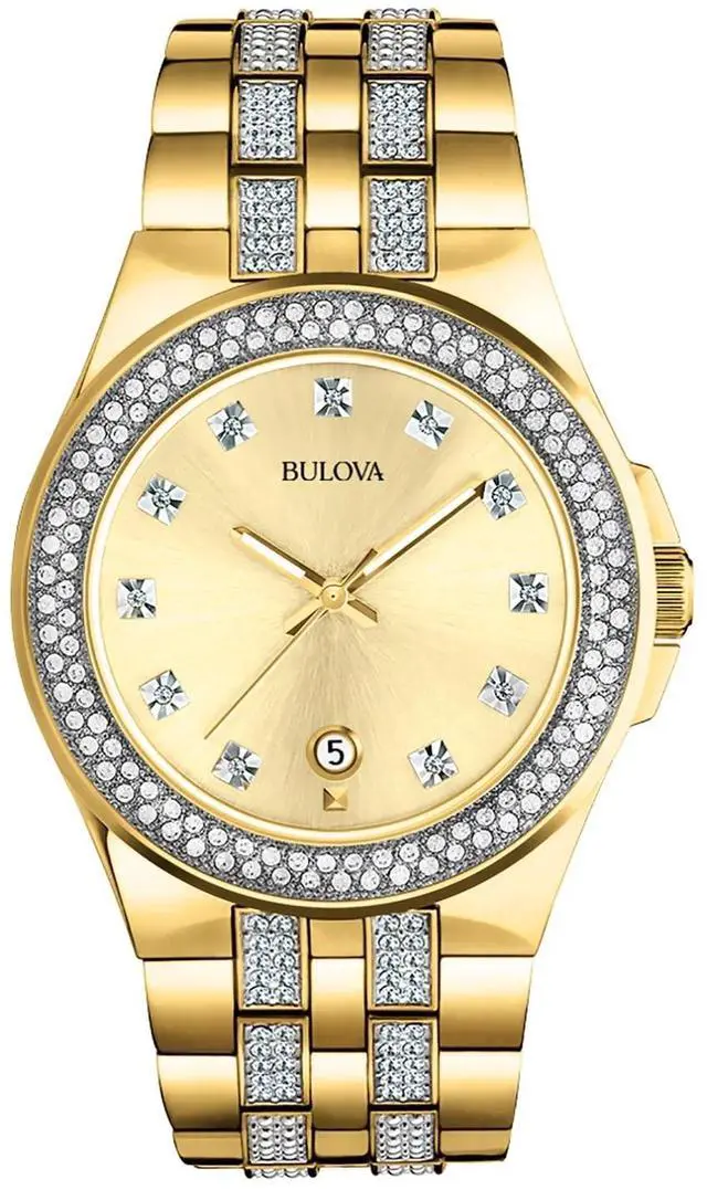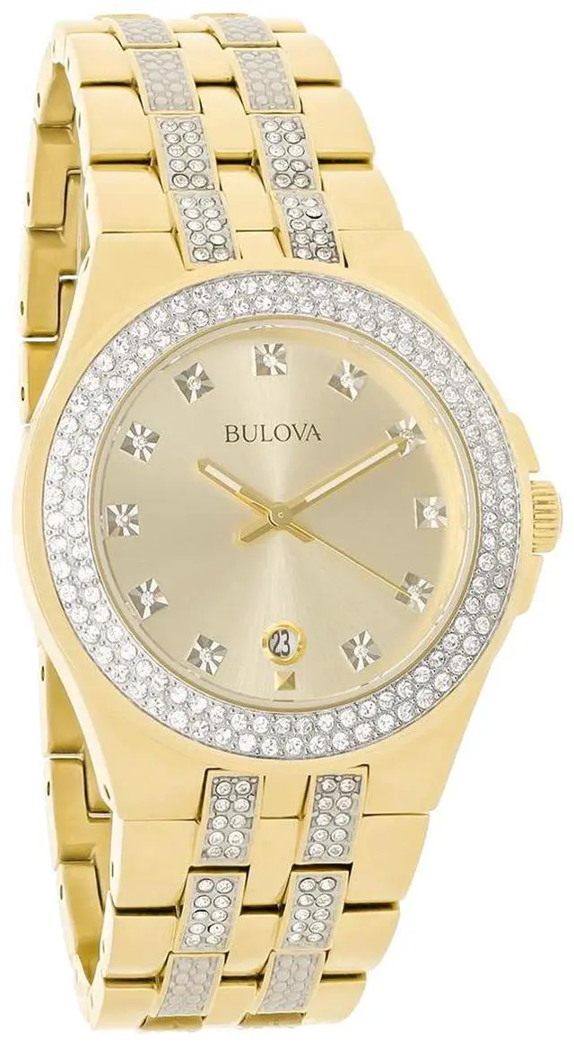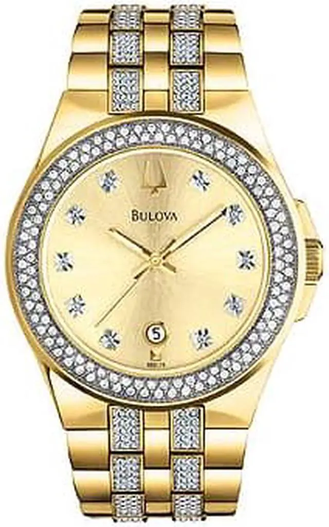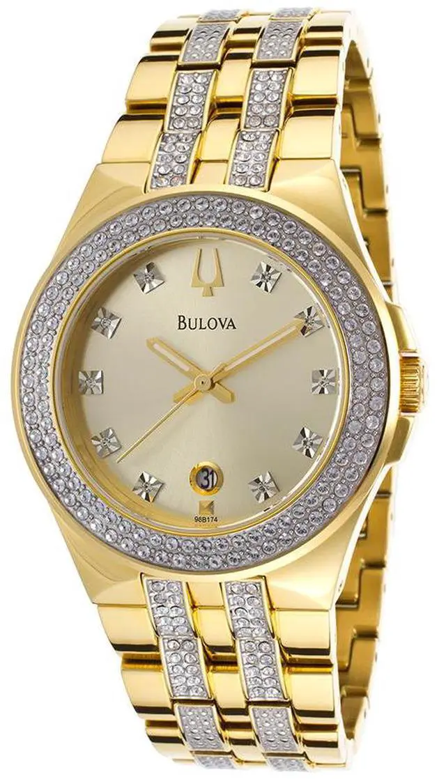 Bulova Mens Crystal Collection Gold Tone Bracelet Quartz Watch 98B174