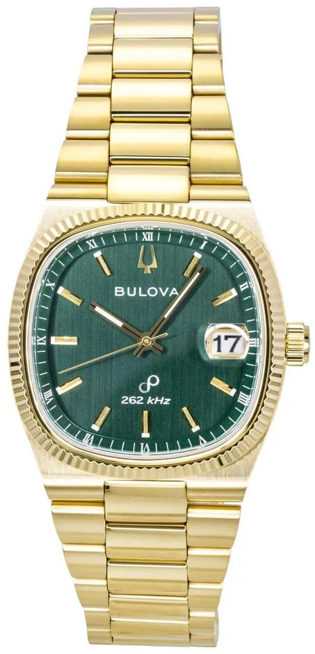 Bulova Super Seville Gold Tone Stainless Steel Green Dial Quartz 97B237 Men's Watch