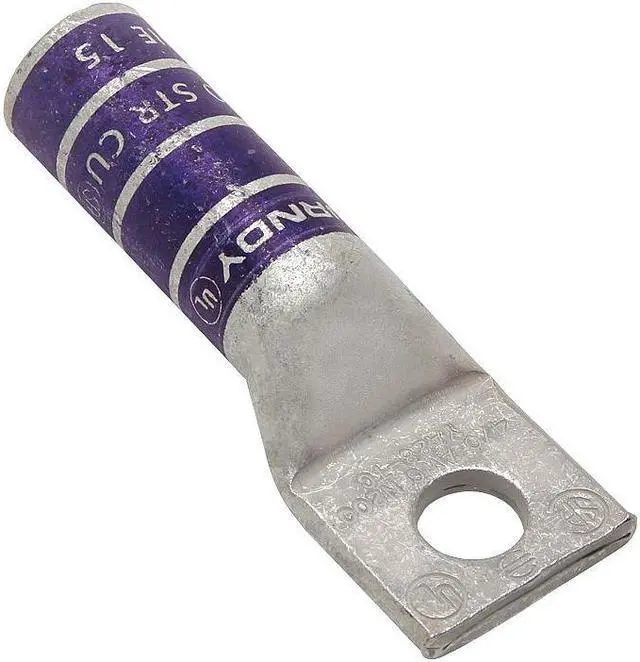 Compression Lug, Barrel Size Long, Color Code Purple, Die Code 15, Tongue Angle Straight, Tongue Width 1.02 in, For Conductor Material Copper, For Stud Size 3/8 in, For Stranded Copper Wire Size - Minimum 4/0 AWG, For Stranded Copper Wire Size - Maximum 4/0 AWG, Inspection Hole No, Hole Center to Center Not Applicable, Material Copper, Maximum Temperature 194 Degrees F, Maximum Voltage 35 kV, Termination Style Crimp, Standards CSA Certified, UL 486A-486B, UL Listed, Number of Holes 1. This item has been restricted from sale in the following state (s): []