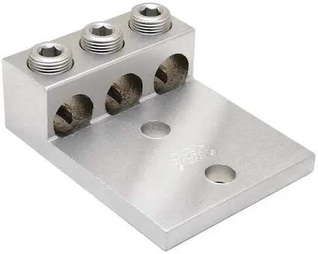 Wire Connector, For Conductor Material Aluminum, Copper, For Stranded Copper Wire Size - Minimum 2 AWG, For Stranded Copper Wire Size - Maximum 600 kcmil, For Stud Size 1/2 in, Head Style Slotted, Number of Holes 2, Hole Diameter 0.56 in, Hole Spacing 1.75 in, Body Material Aluminum, Maximum Temperature 194 Degrees F, Maximum Voltage 600 V, Number of Conductors 3, Number of Terminations 3, Tongue Length 3.22 in, Tongue Width 3.63 in, Tongue Thickness 0.44 in, Connector Type Terminal. This item has been restricted from sale in the following state (s): []