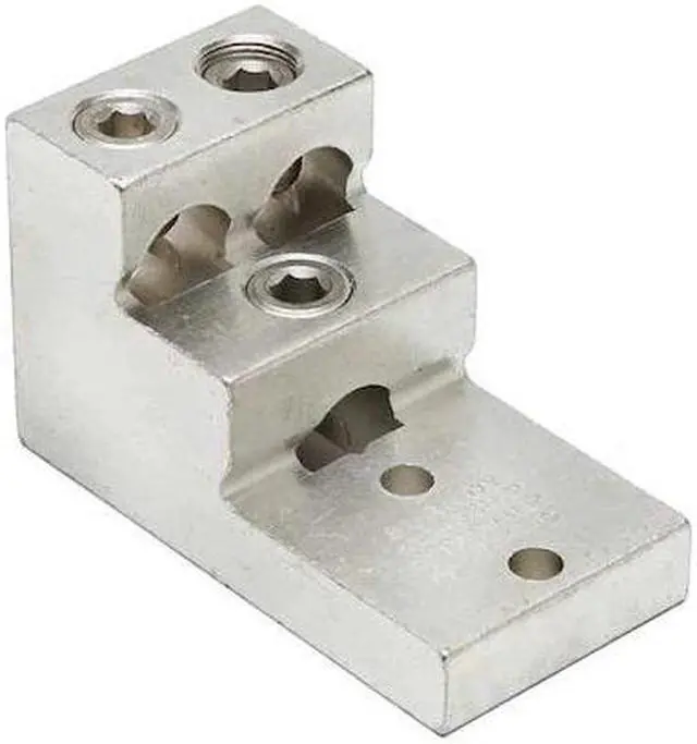 Wire Connector, For Conductor Material Aluminum, Copper, For Stranded Copper Wire Size - Minimum 2 AWG, For Stranded Copper Wire Size - Maximum 600 kcmil, For Stud Size 3/8 in, Head Style Hex, Number of Holes 2, Hole Diameter 0.41 in, Hole Spacing 1.38 in, Body Material Aluminum, Maximum Temperature 194 Degrees F, Maximum Voltage 600 V, Number of Conductors 3, Number of Terminations 3, Tongue Length 2.31 in, Tongue Width 2.5 in, Tongue Thickness 0.75 in, Connector Type Terminal. This item has been restricted from sale in the following state (s): []