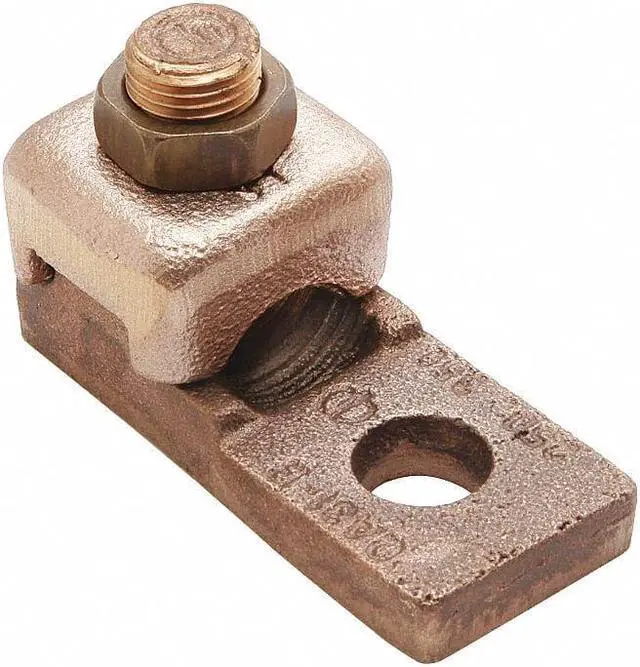 Mechanical Connector, For Conductor Material Copper, For Stranded Copper Wire Size - Minimum 4 AWG, For Stranded Copper Wire Size - Maximum 1 AWG, For Stud Size 1/4 in, Head Style Hex Head, Number of Holes 1, Hole Diameter 0.28 in, Hole Spacing Not Applicable, Body Material Copper, Maximum Temperature 194 Degrees F, Maximum Voltage 600 V, Number of Conductors 1, Number of Terminations 1, Tongue Length 0.75 in, Tongue Width 0.63 in, Tongue Thickness 0.22 in, Connector Type Terminal. This item has been restricted from sale in the following state (s): []