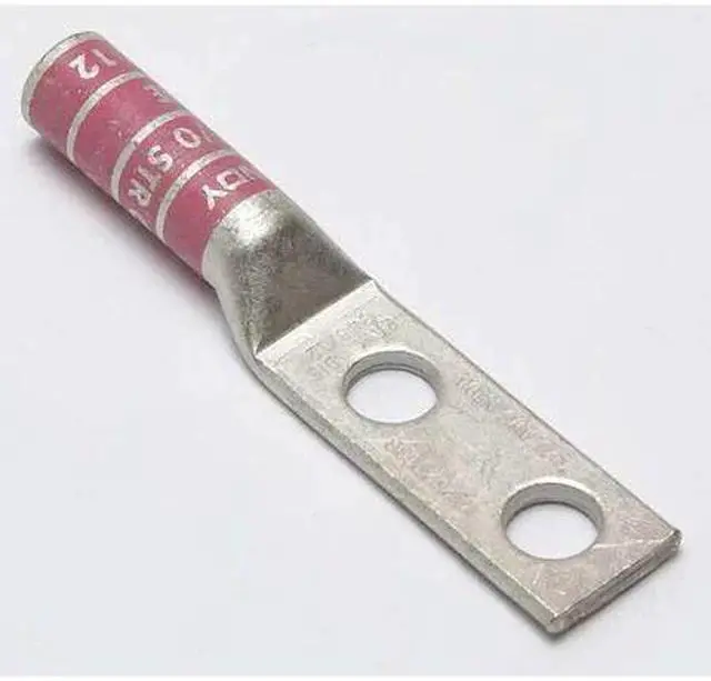 Two-Hole Lug Compression Connector, Barrel Size Long, Color Code Pink, Die Code 12, 348, Tongue Angle Straight, Tongue Width 0.75 in, For Conductor Material Copper, For Stud Size 3/8 in, For Stranded Copper Wire Size - Minimum 1/0 AWG, For Stranded Copper Wire Size - Maximum 1/0 AWG, Inspection Hole No, Hole Center to Center 1 in, Material Copper, Maximum Operating Temperature 194 Degrees F, Maximum Voltage 35 kV AC, Termination Style Crimp, Standards CSA Certified, UL 486A-486B, UL Listed.
