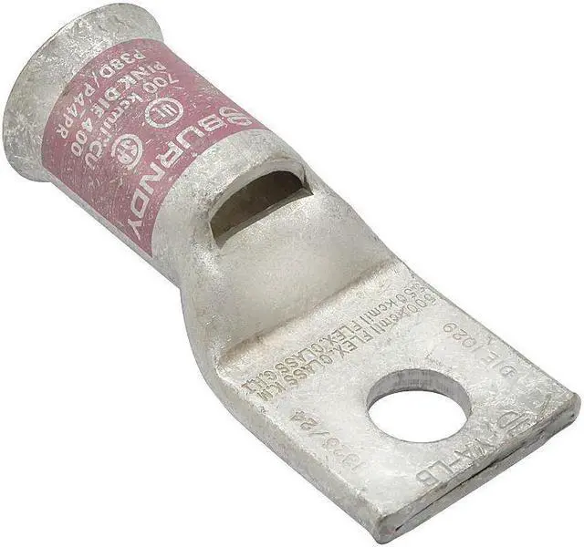One-Hole Lug Compression Connector, Color Code Brown, Die Code 1, 027, For Stud Size 5/8 in, Hole Center to Center Not Applicable, Material Copper, Maximum Operating Temperature 194 Degrees F, Standards CSA Certified, UL 486A-486B, UL Listed, Connector Type Belled Straight Barrel. This item has been restricted from sale in the following state (s): []